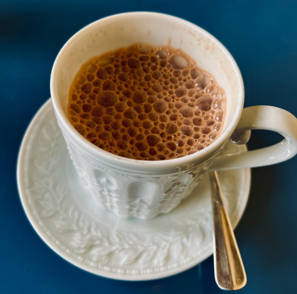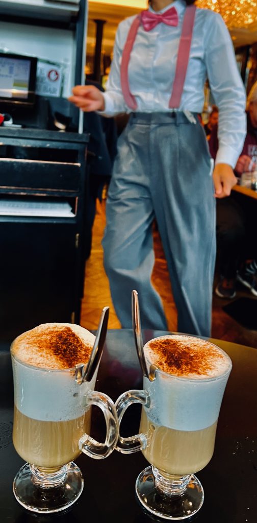 We pass by Christmas festive decorations in shop windows on our walk, ending up at the Café Impérial on the rue de Rivoli. A stream of people pass alongside our table under the arches – the French really are very stylish and chic. They wear their eclectic clothes well. We order hot chocolate.