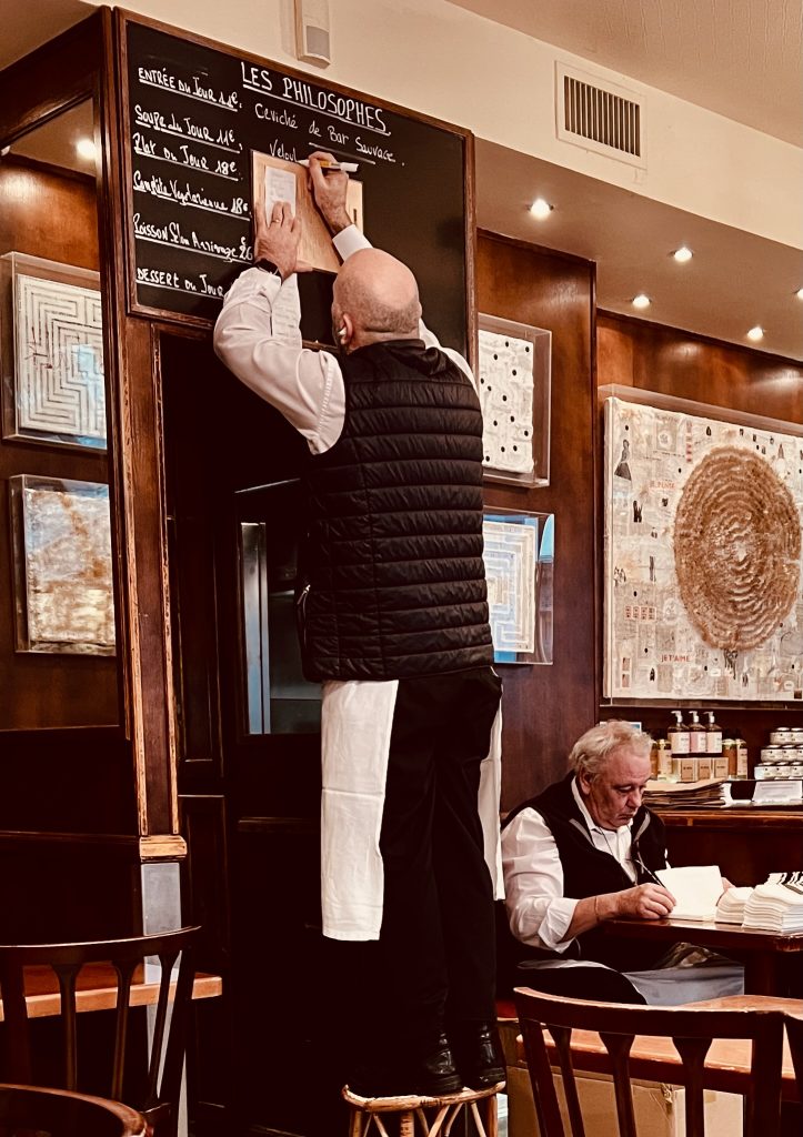 The Ile St. Louis is in my sights. A shop and a restaurant. A while ago I was here with our younger daughter, who found a coat at a very ‘bon marché’ price. John follows reluctantly – shopping is not in his sights!